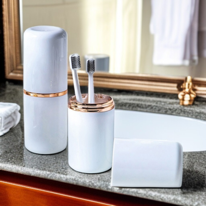 ● 多功能設計,盥洗杯可同時收納牙刷、牙膏等小物,節省行李空間,讓您的旅行更加輕鬆有序。