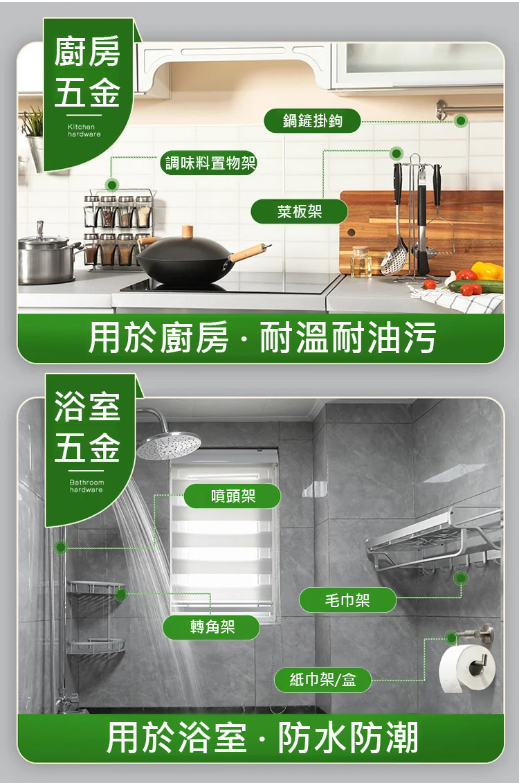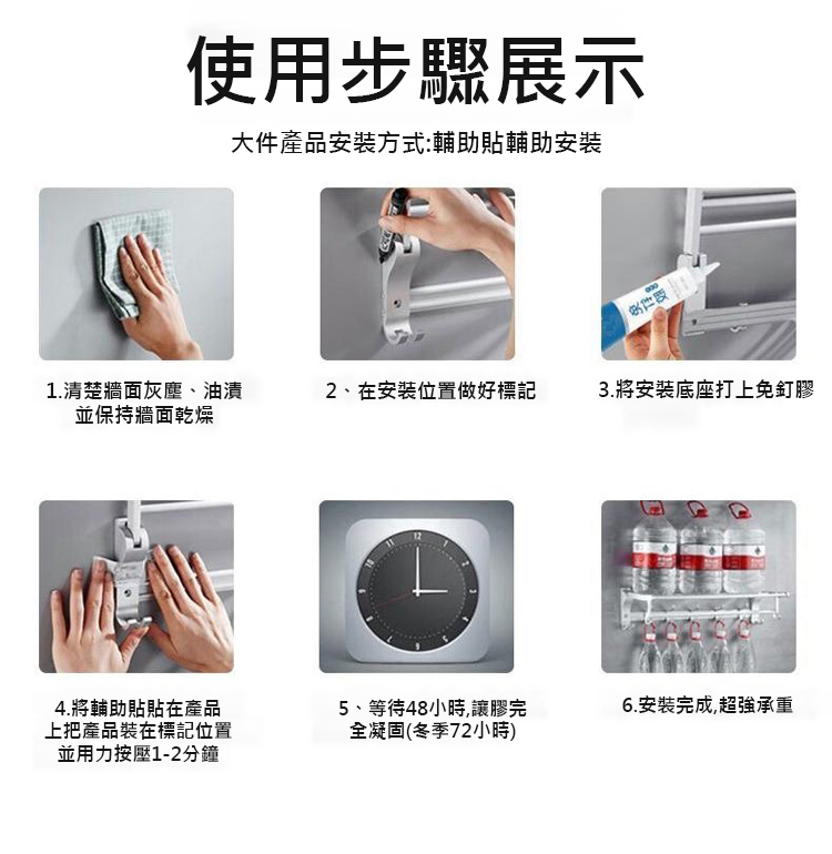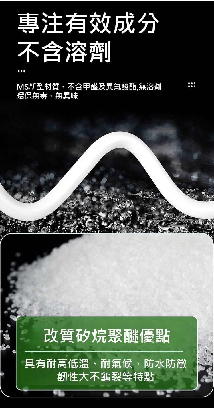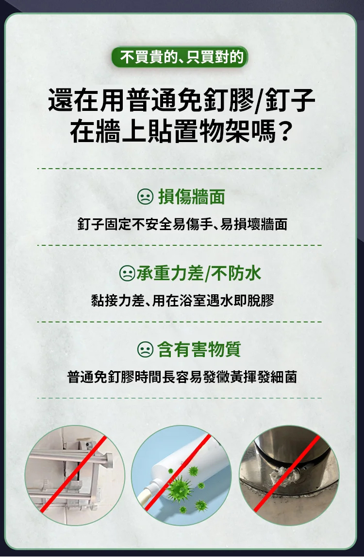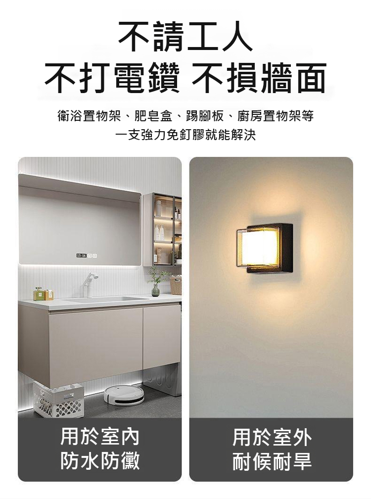 採用進口 MS 新型材質,5 秒快速定位,初黏力超強,4 小時快速成乾,24 小時就能承重,400kg 的拉力相當於掛 8 個成年人,掛置物架、全身鏡、裝飾畫都穩如磐石。耐高低溫性能拉滿,-40℃低溫至 90℃高溫都不變形、不開裂,室內外通用,浴室防水防潮、室外耐候抗旱