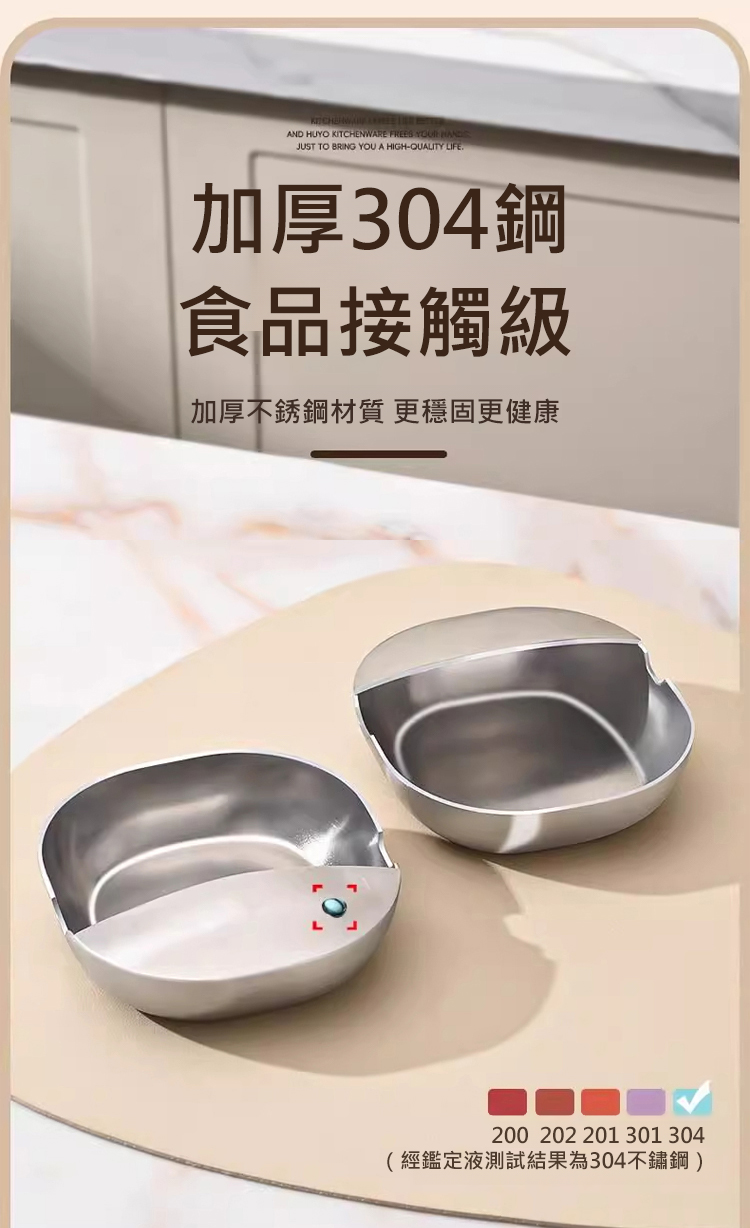 設計貼心又實用!方圓加深碗形設計,容量大,能同時放下鍋鏟、湯匙、筷子等多種廚具,凹槽設計剛好適配餐具,不會滑落。小巧小巧不佔空間,直徑僅 12cm,放在爐台旁不礙事,簡約拉絲工藝,顏值在線,能融入各種風格廚房,既是收納工具也是廚房裝飾。