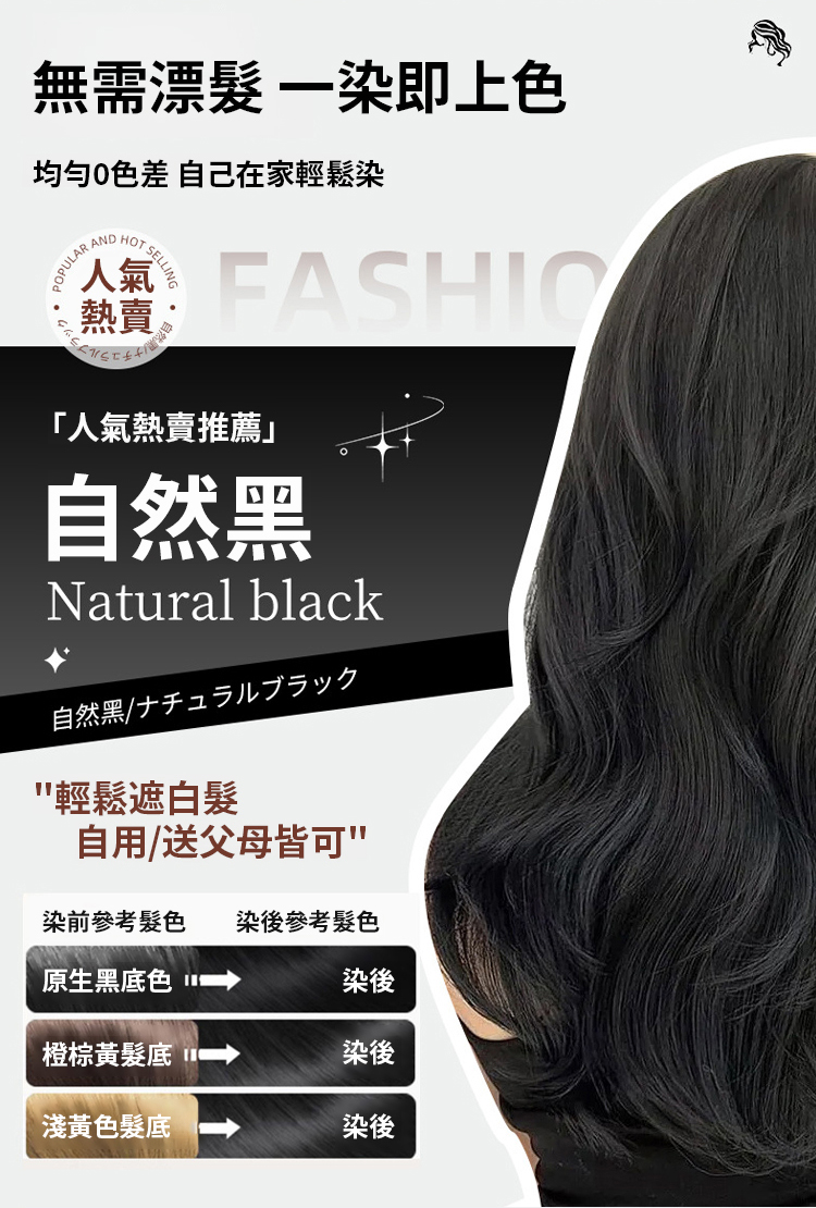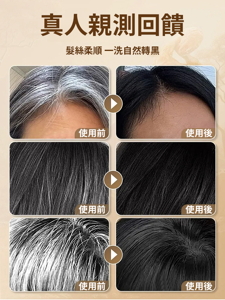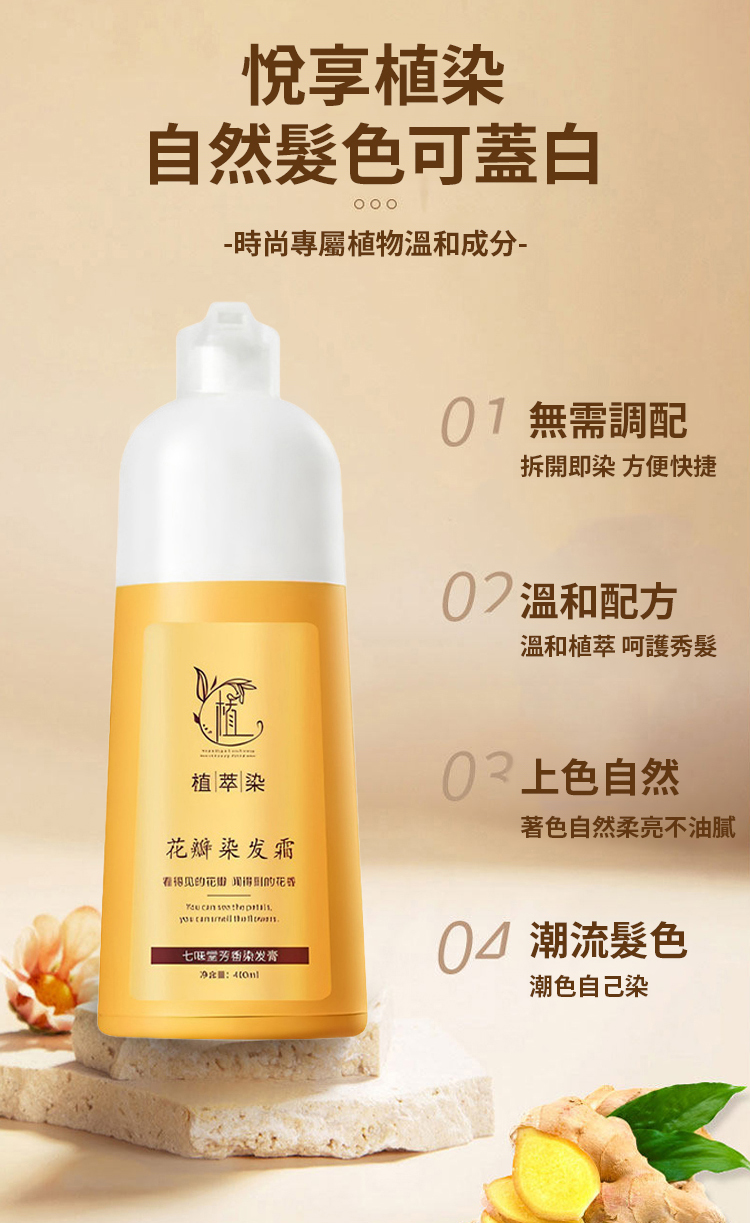 全網銷售 TOP1 的染髮神器,專為白髮人群研發,添加生薑萃取物、人參根、何首烏、側柏葉等植萃成分,染護合一,在遮蓋白髮的同時滋養毛囊、強根健發,減少脫髮,讓頭髮越來越濃密烏黑。不含氨水等刺激性成分,溫和不刺激頭皮,不易過敏,敏感肌也能放心使用。