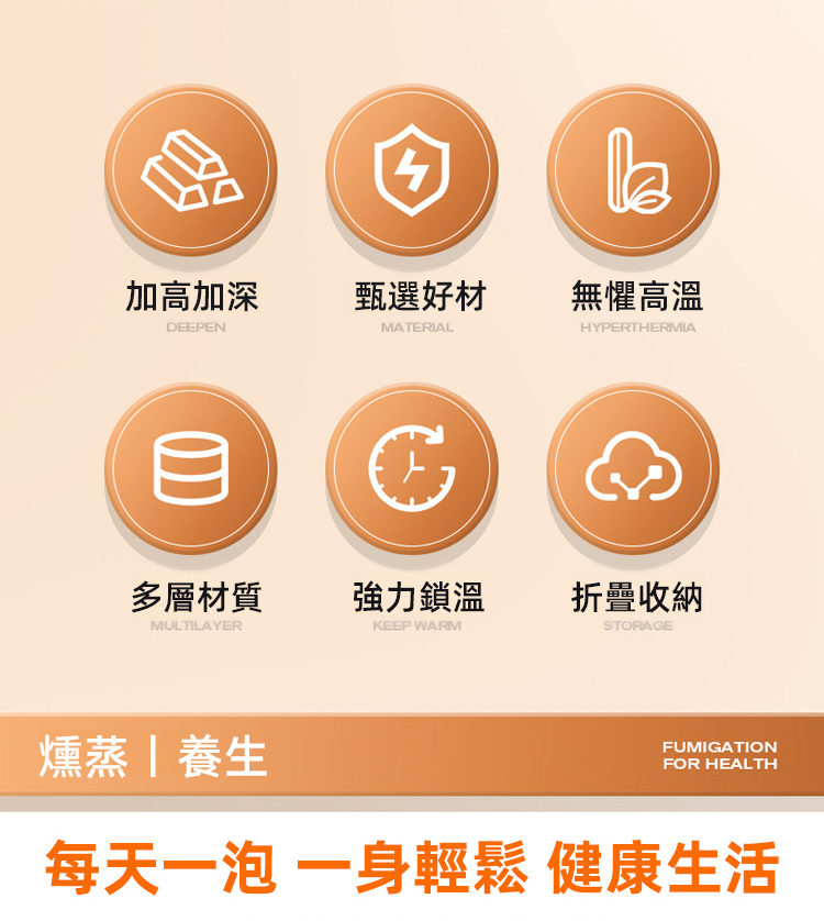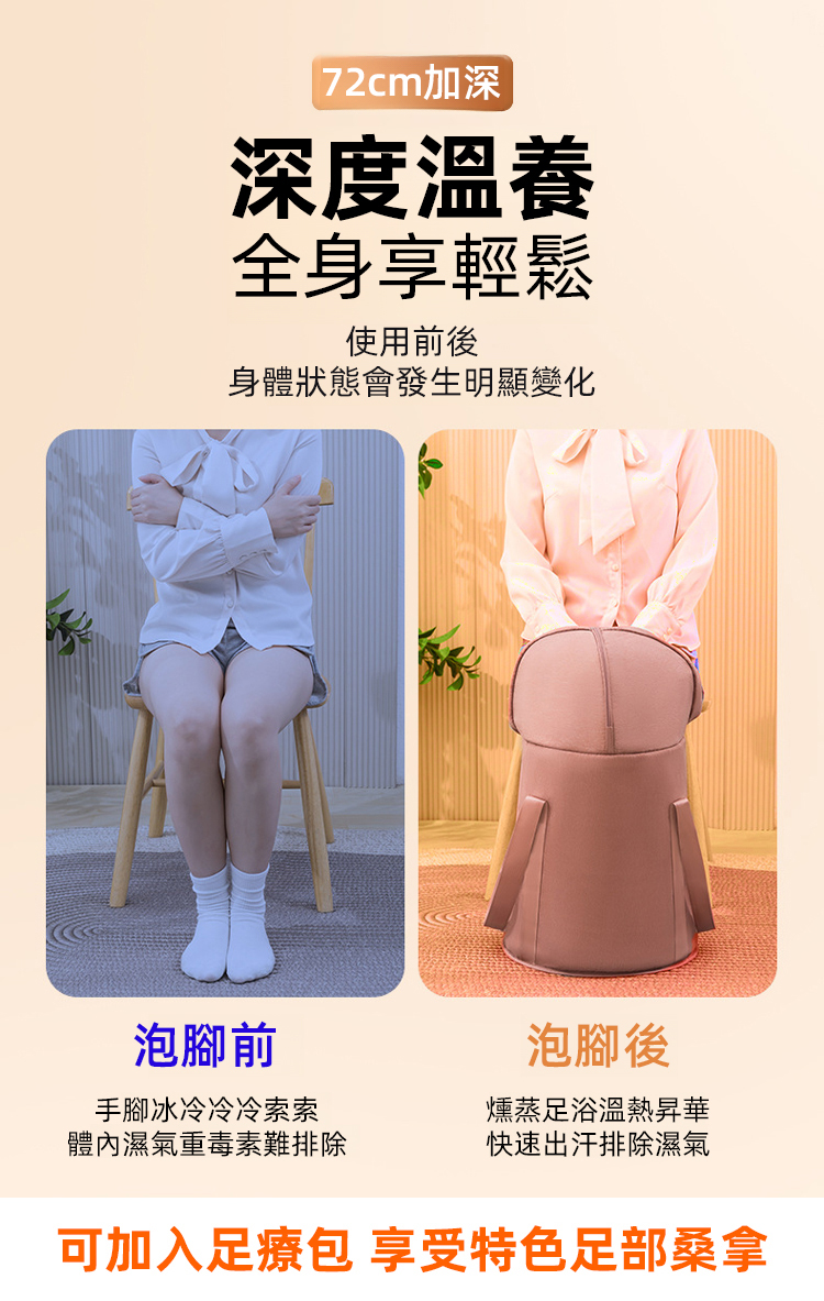 74cm 加深桶身,耐 100°C 高溫,密封一體成型設計,鎖住熱氣不流失,熏蒸感十足,泡 20 分鐘就能微微出汗,濕氣和毒素都能跟著排出來。